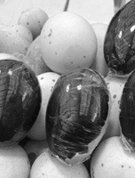 避免传统皮蛋生产过程中在皮蛋蛋壳及蛋壳膜表面形成的大量黑色斑点,得到的皮蛋表面光洁无斑,明显提高其外观特性